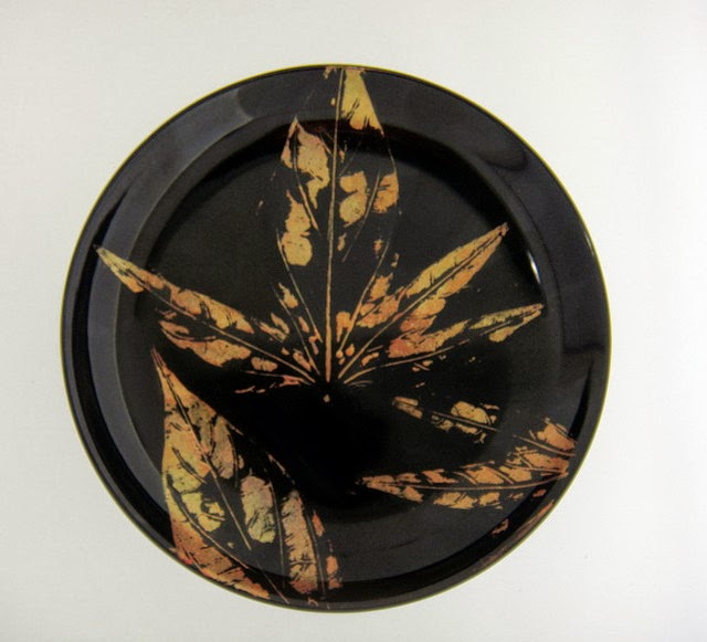 展出者:高吳惠琴、蔡佩瑾.謝雅芬.李欣曇.黃姿尹 材質:點心盤(漆器)、漆、珍珠粉 售價:300元.限量20件 創作構想:將自己喜愛的葉形,自行設計編排在個人點心盤上,最後輕揮美麗的色彩,它將會獨一無二的作品。 作品示範圖: